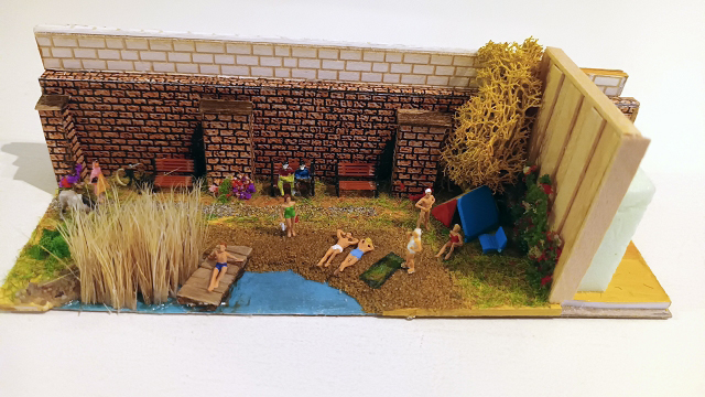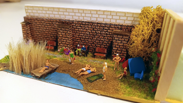 Das Schilf habe ich von HEKI Nr. 3115. In der Höhe auf ca. 18 mm gekürzt. Die Badenden von Preiser mit der Nr. 79071.