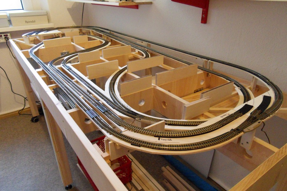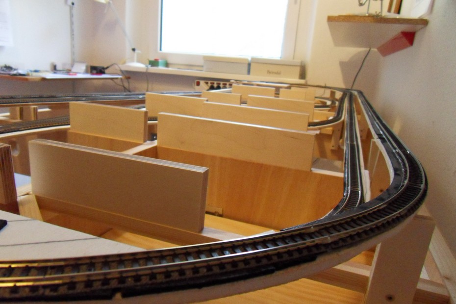Weiterhin wurden für die Ebene 0 (Bahnhofsplatte) die Stützen montiert.
