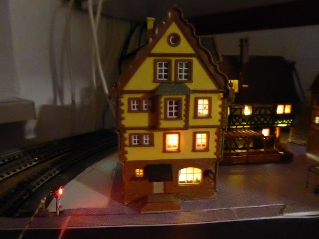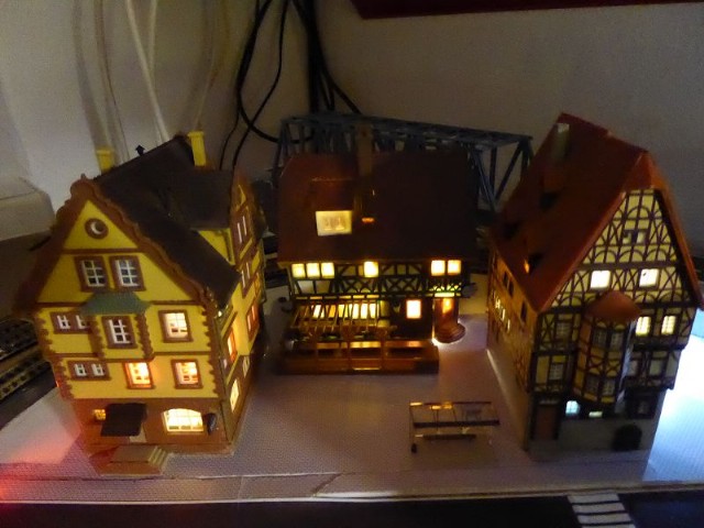 Die beiden daneben stehenden Modellhäuser werden in naher Zukunft für die Beleuchtung genauso umgebaut.