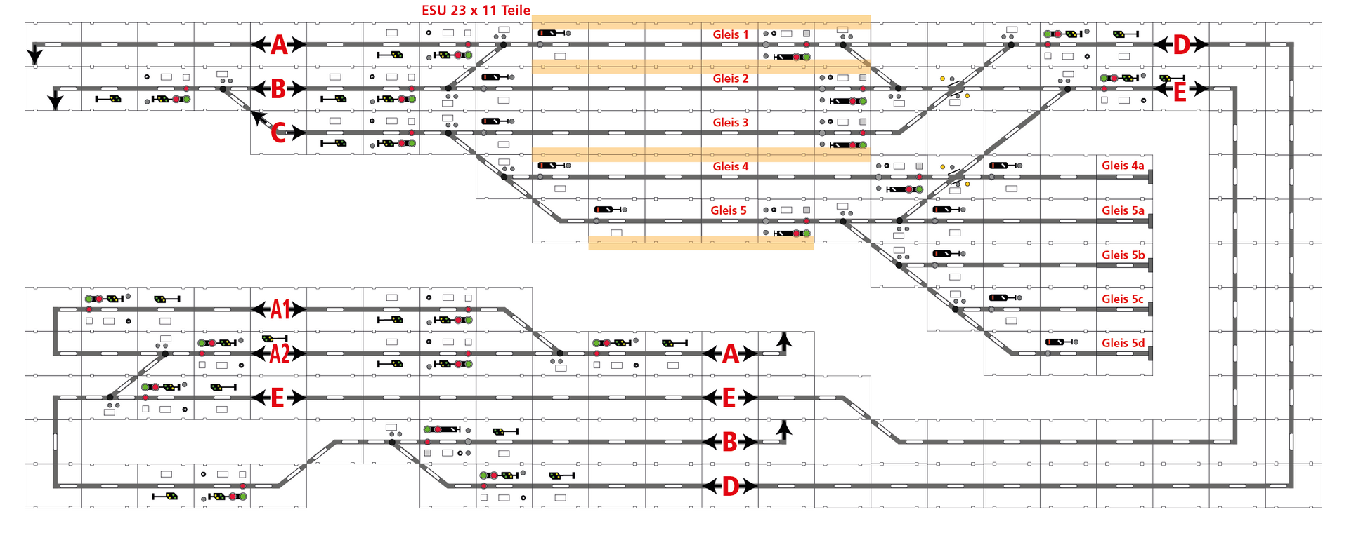 Zur besseren Übersicht sind die Strecken mit Buchstaben versehen, die dann auch auf dem Stellpult angegeben sind.